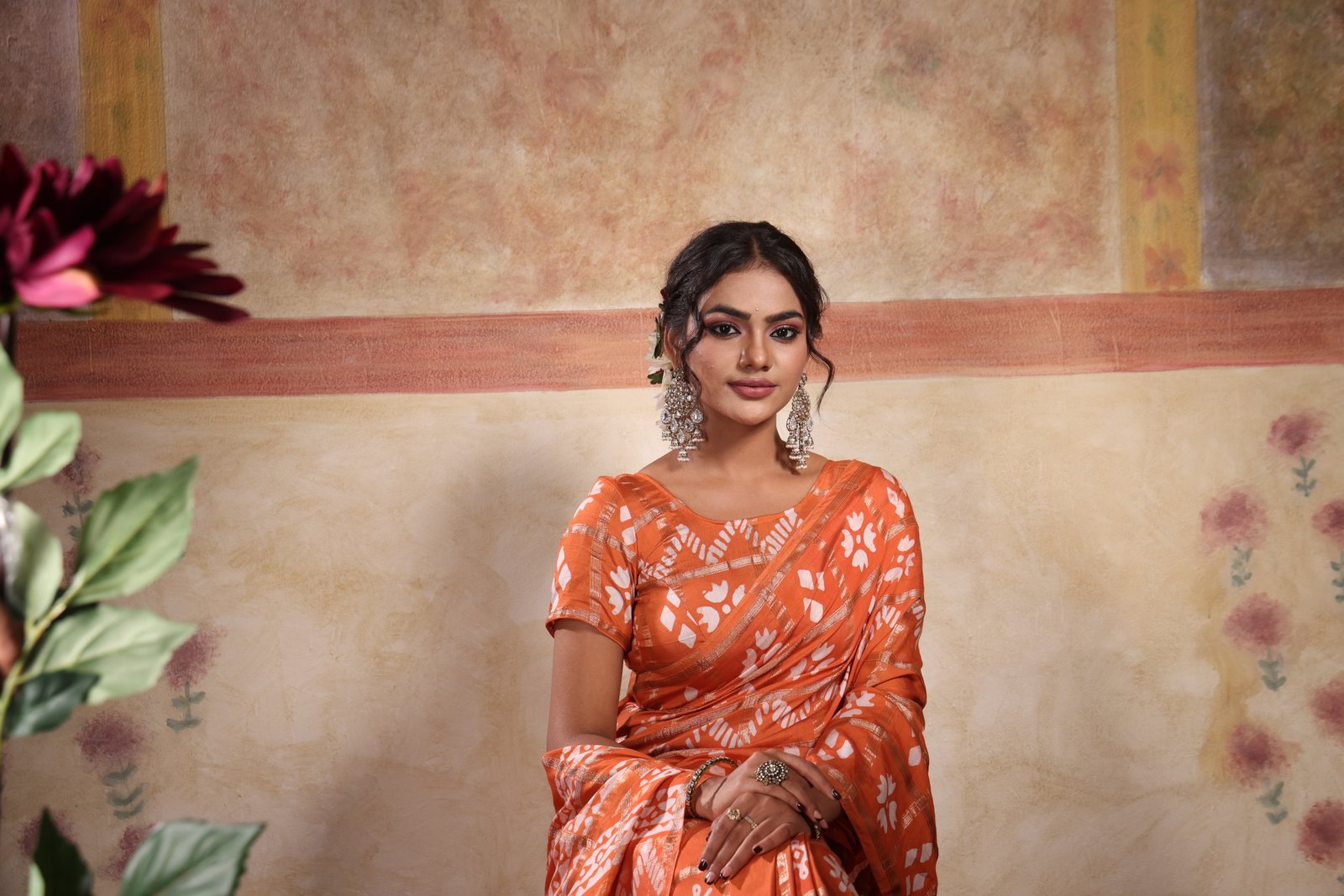Berryglow Block print saree