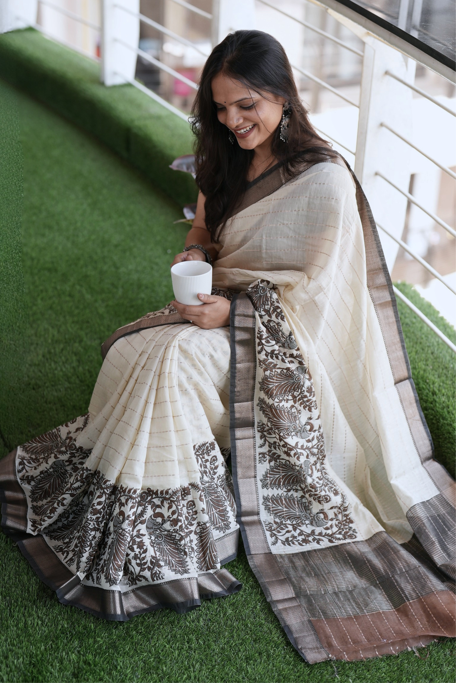 The Ivory Block Print Saree is all about quiet details and a clean, timeless look. The subtle prints sit gently on the ivory base, giving it just enough character while keeping it light and versatile. It’s the kind of saree that works across moods dress it up or keep it simple, it always feels just right.