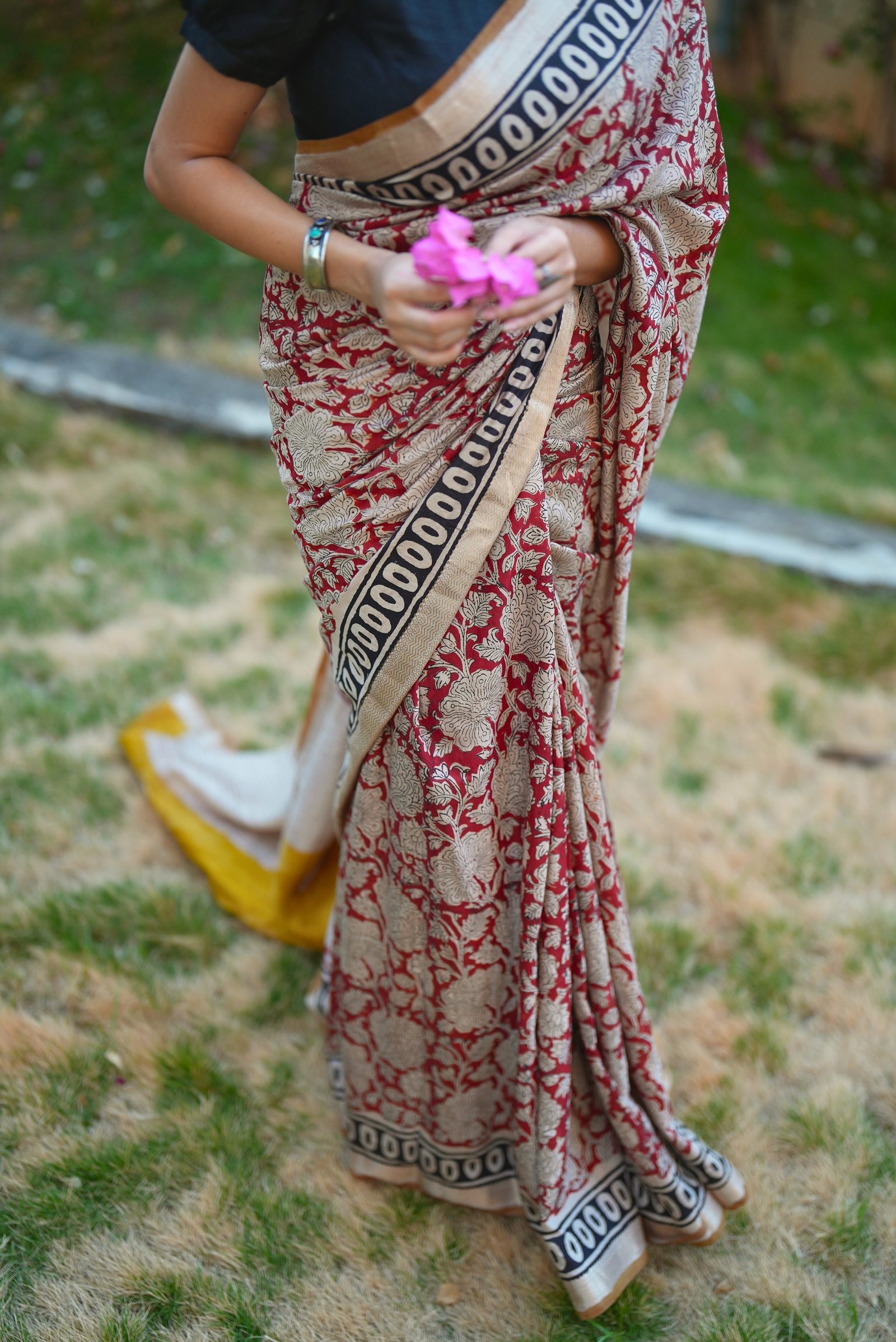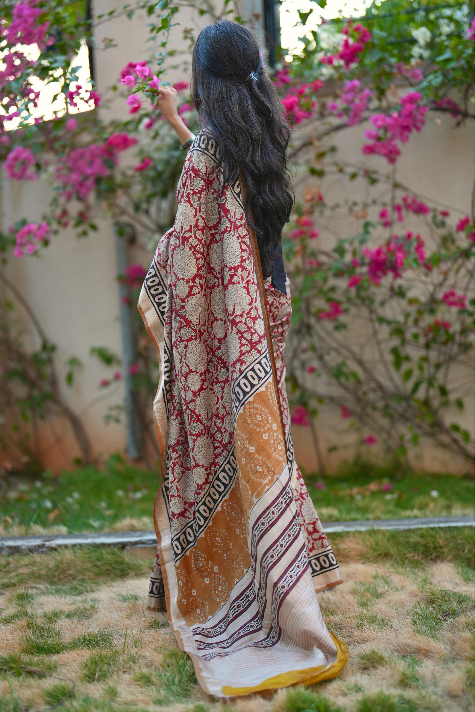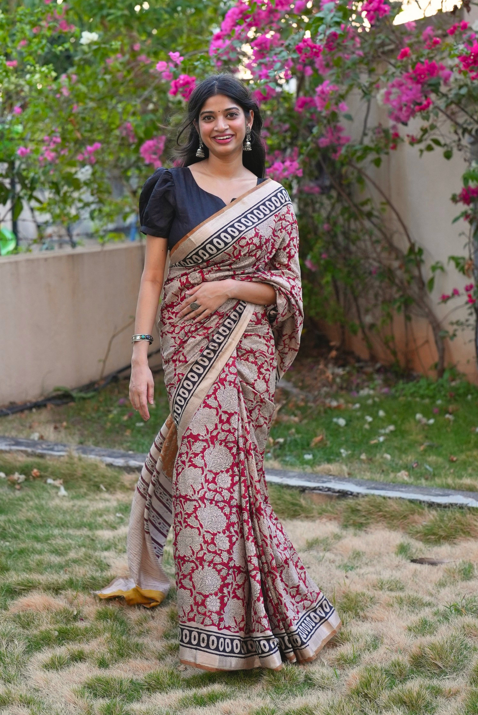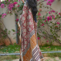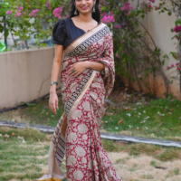 ✔ Color: Deep red with intricate floral Bagru prints