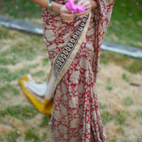 The Red Blossom Saree is made for days when you want your outfit to do the talking. With rich red tones and detailed floral prints spread all over, it brings that full, festive energy without feeling over the top.